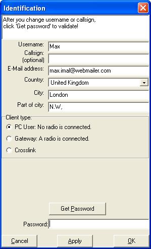 Si es la primera vez que usa FRN Client, debe crear una cuenta. Inicie el programa y haga clic en «Configuración -> Identificación». Se mostrará un formulario (Identificación) que debe completar.