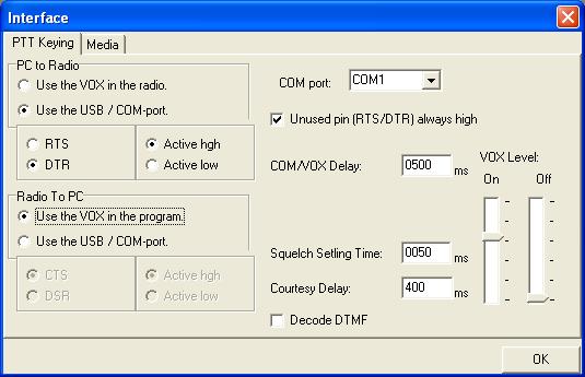 – VOX: Si no utiliza la manipulación del puerto COM, el equipo también necesita un VOX integrado.